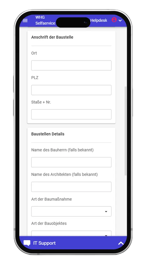 ► Baustellen melden können Sie über unser WHG Selfservice-Portal unter https://selfservice.wertheimer-gruppe.com/baustellemelden